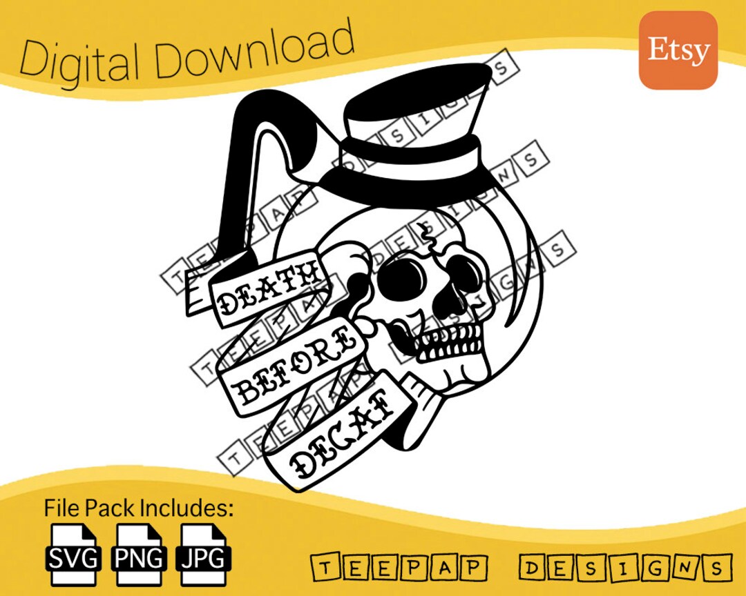 Death Before Decaf Coffee Skull Tattoo Style Digital Cut Etsy